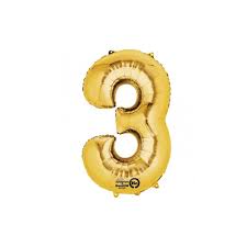 Large Number 3 Gold Foil Balloon 34″
